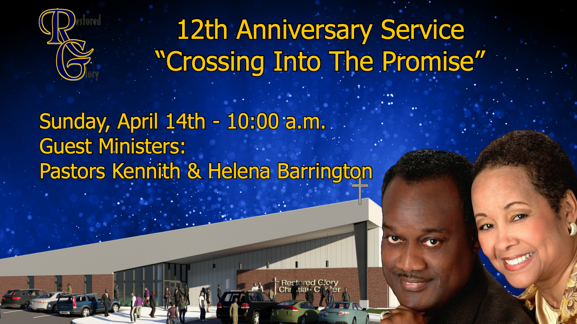 Come celebrate our 12th Anniversary and Debt Removal for our Land. Our guest speakers for this service is Pastors Kennith & Helena Barrington. Service begins @ 10:00 a.m.
