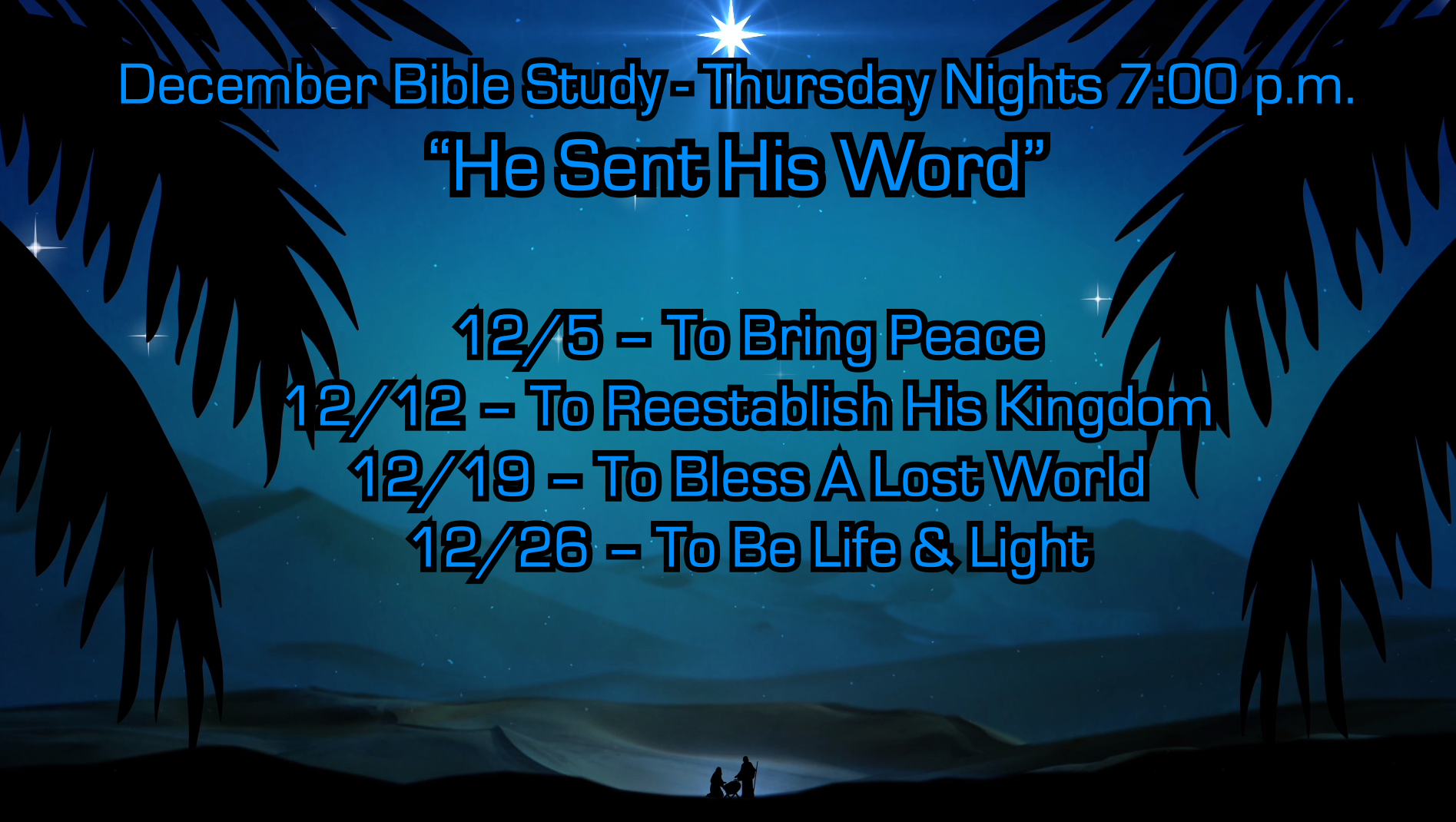 This month’s bible studies focus on the Reason for the season Himself, Jesus Christ. Come out and join us as we explore God’s word together.